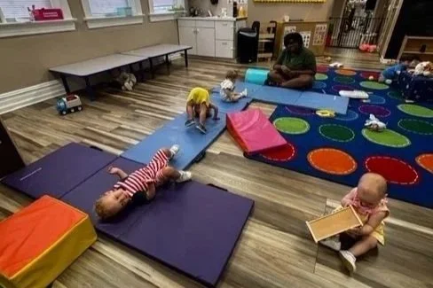 In our Infant Class, we provide a nurturing, faith-filled environment where babies from 6 weeks to 12 months grow. Rooted in early childhood education and inspired by Christian values, our teachers foster secure attachments through responsive, individualized care. We support developmental milestones with tummy time, sensory play, and soothing interactions that spark curiosity and build trust, aligning with research on infant brain development. Daily routines adapt to each child’s needs, creating a peaceful space with calming colors and ensuring every infant feels cherished as a unique creation.